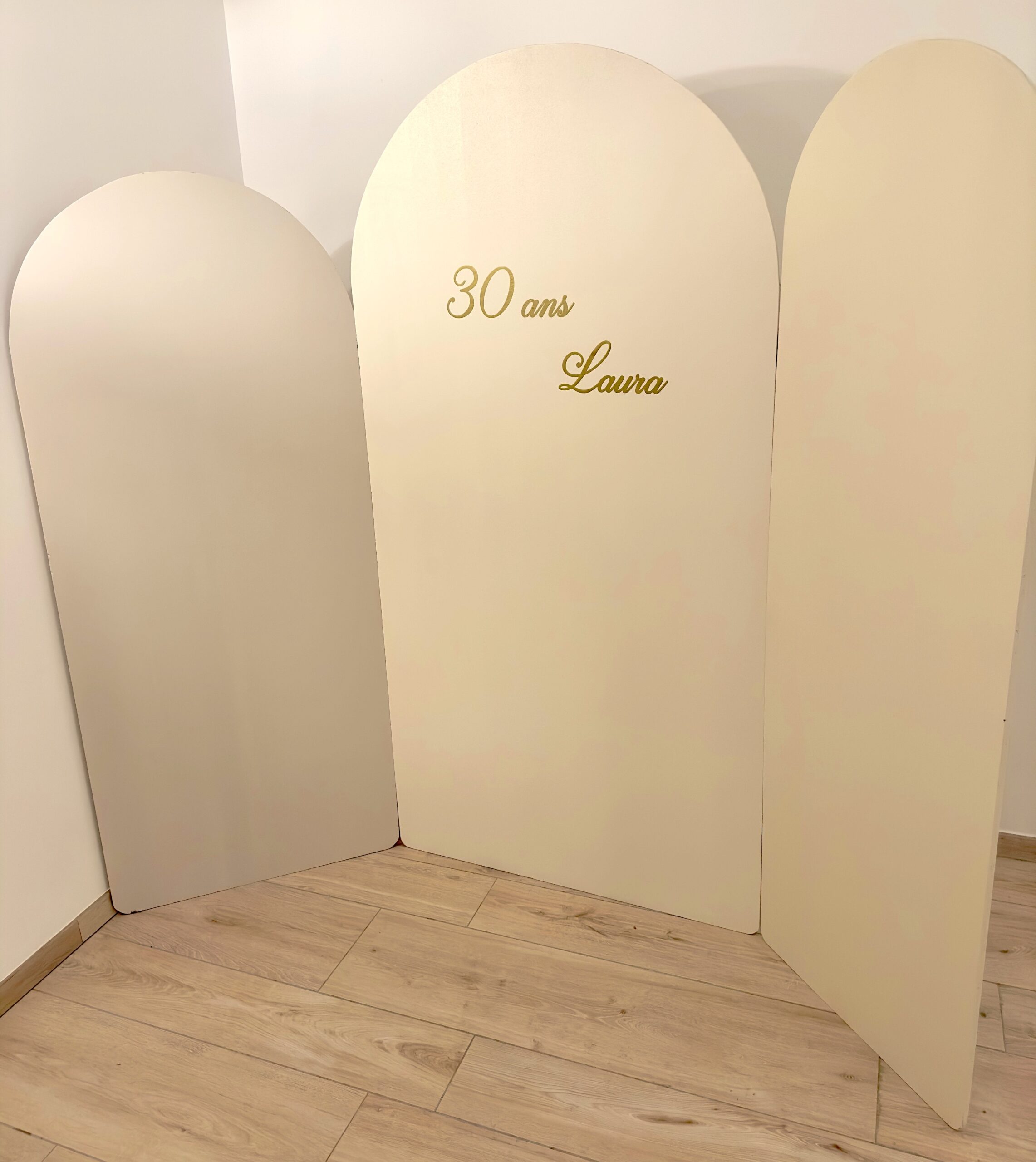 Le backdrop a été conçu en bois et peint dans des couleurs neutres pour vous permettre de créer un véritable coin photo lors de vos événements.